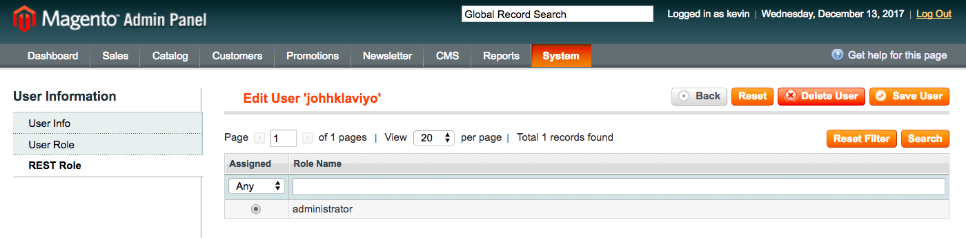 - Klicke auf System > Web Services > REST - Roles.