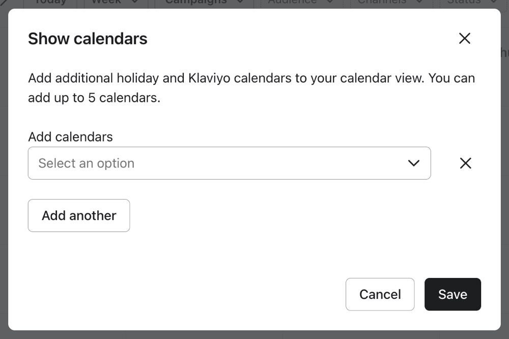 Alle Einstellungen, die auf deinen Kalender angewendet werden, werden zurückgesetzt, wenn du dich von deinem Klaviyo-Konto abmeldest.