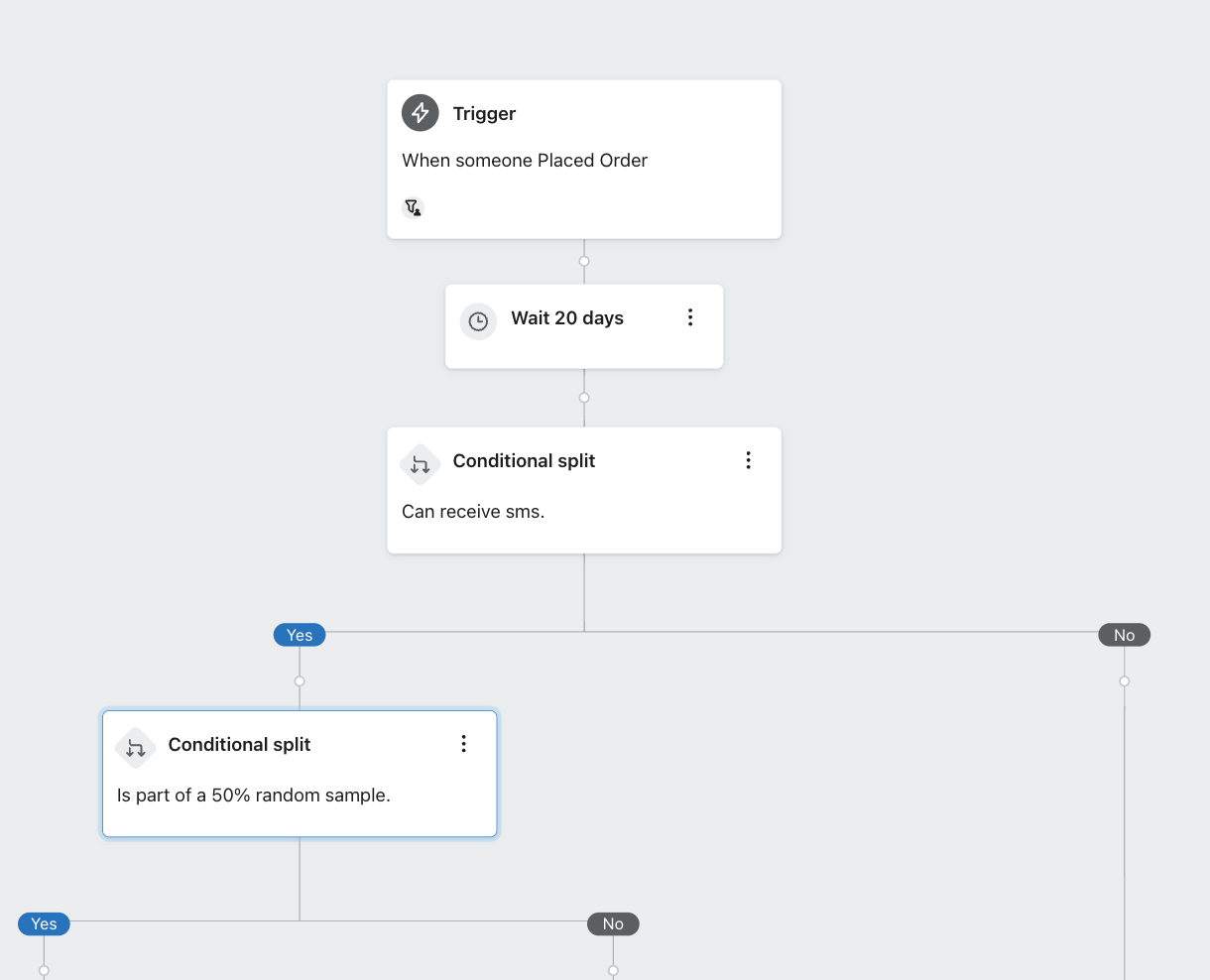- Bearbeite die Nachricht(en) im YES-Pfad, um deinen Anreiz anzubieten (z. B. einen Rabatt oder kostenlosen Versand), den Zeitpunkt der Nachrichten zu ändern usw.
