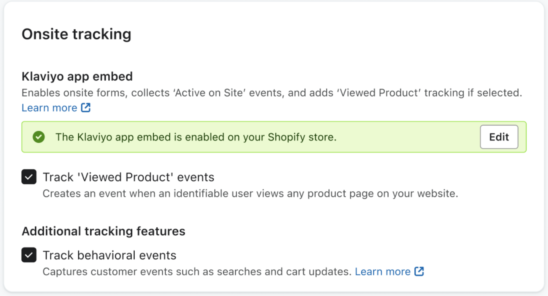 Bist du neu bei Klaviyo? Du kannst Shopify-Ereignisse, die in den Warenkorb gelegt wurden, in Klaviyo automatisch verfolgen, indem du das Onsite-Tracking aktivierst.