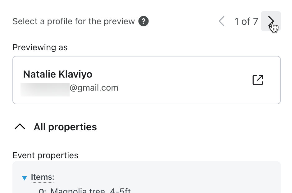 Wenn noch niemand die auslösende Aktion des Flows abgeschlossen hat, gibt es keine Vorschaudaten für den Flow. Du kannst zu deiner Website navigieren, um die Aktion auszuführen (z.B. Artikel in den Warenkorb zu legen und einen Bezahlvorgang zu starten), und dann wird dein Ereignis in den Vorschauoptionen von Klaviyoangezeigt.