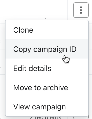 - Click the 3-dot icon on the far right of the campaign, then click Clone.