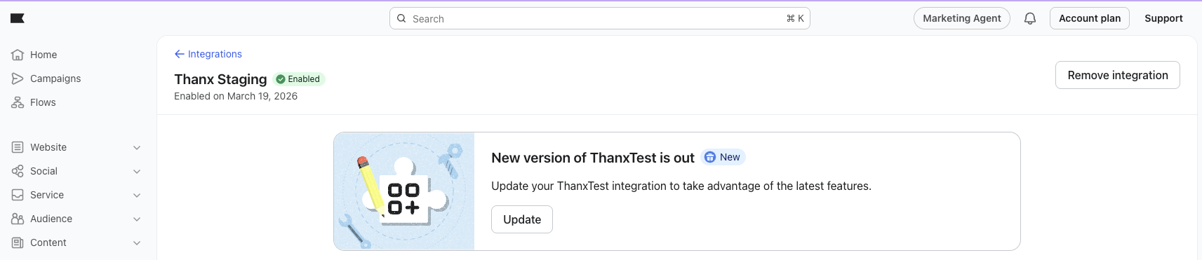 - Check the box to sync Thanx email subscribers to a Klaviyo list, and then select a list from the dropdown.