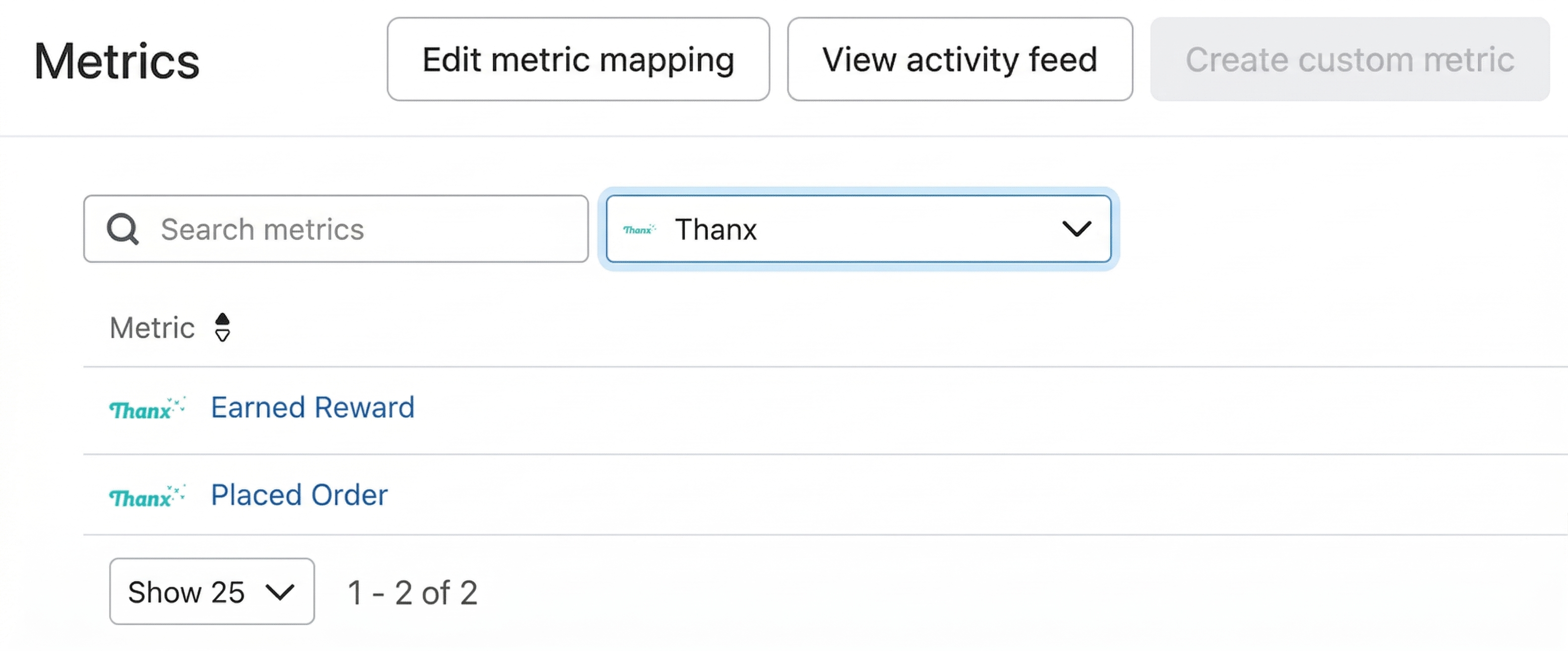 - To filter this view to see only Thanx metrics, use the filter selector next to the search bar and select Thanx.