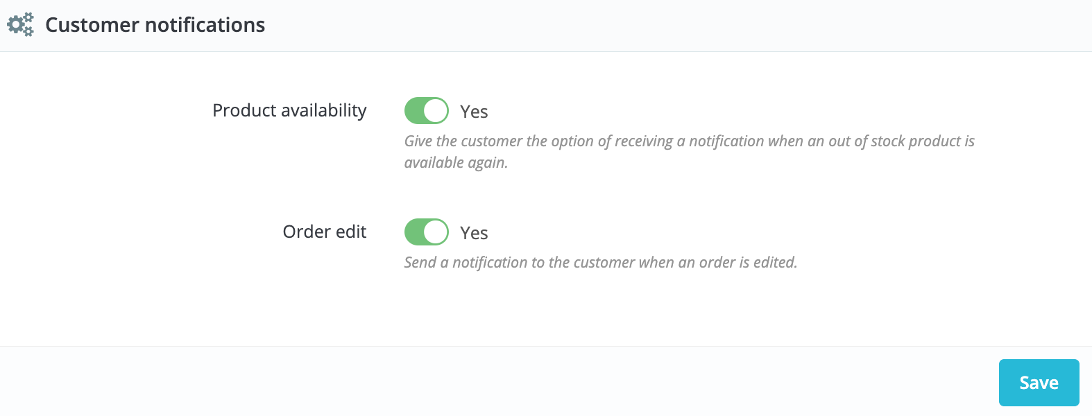 Next, you’ll need to toggle on a setting in PrestaShop. Before toggling the setting, make sure you have the mail alerts module installed in PrestaShop and have turned on product availability: