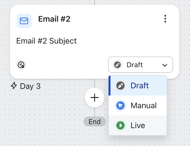 Aunque los flujos están diseñados para ser "set it and forget it (configúrelo y olvídese de él), las pruebas y la optimización de" son fundamentales para afinar su estrategia de marketing. Cualquier mensaje de un flujo existente puede editarse independientemente de su estado, por lo que podrá realizar actualizaciones en directo sin necesidad de pausar el envío. También puede añadir nuevos borradores de correos electrónicos o SMS a sus series, dejándolos en modo manual o borrador, sin interrumpir ningún mensaje en directo.