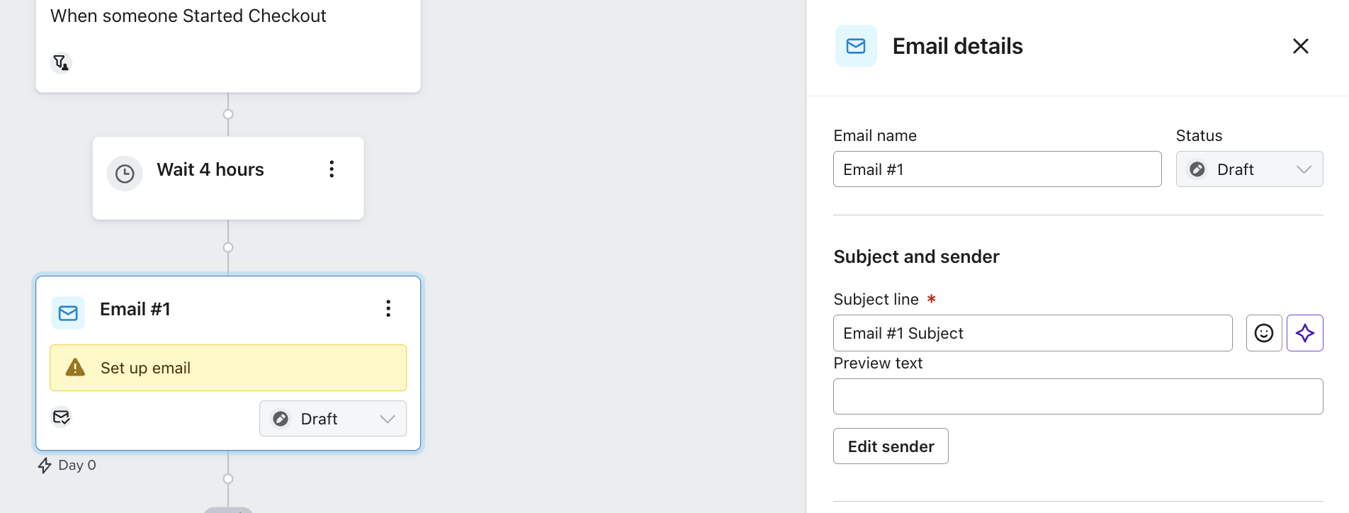 - En la barra lateral, puedes editar el nombre del correo electrónico, el asunto de correo electrónico y el texto de vista previa. Haz clic en Editar remitente para editar el: