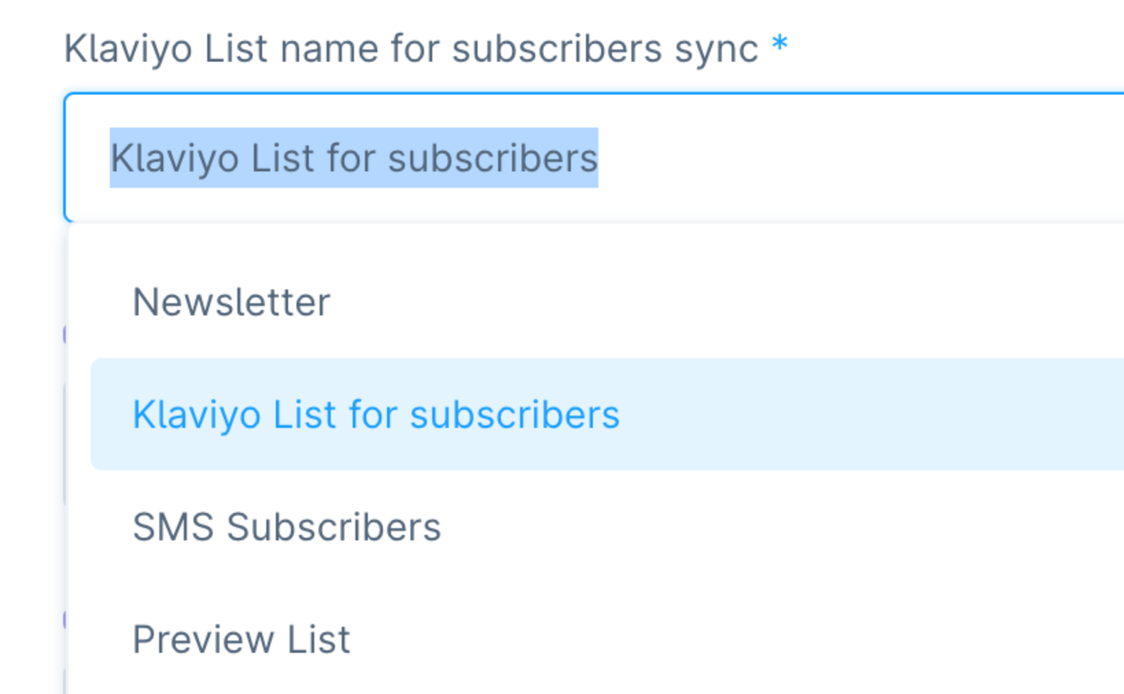 - A continuación, elija una lista Klaviyo del desplegable a la que se añadirán los perfiles que se suscriban a través de un formulario Shopware.