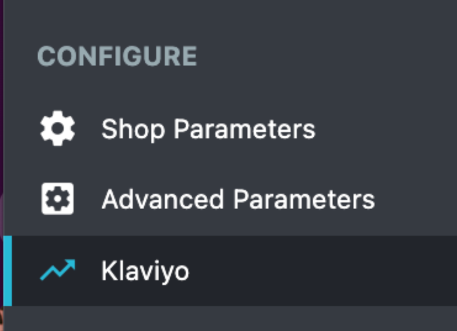 - En su admin de PrestaShop, navegue a Configurar > Klaviyo.