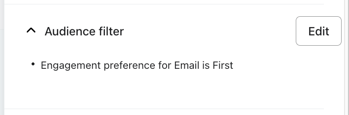 Los filtros de audiencia se bloquean cuando se programa el mensaje. Si el mensaje vuelve al estado de borrador, los filtros se desbloquean y se pueden reconfigurar. Una vez que el mensaje comienza a enviarse, la configuración del filtro se vuelve permanente.