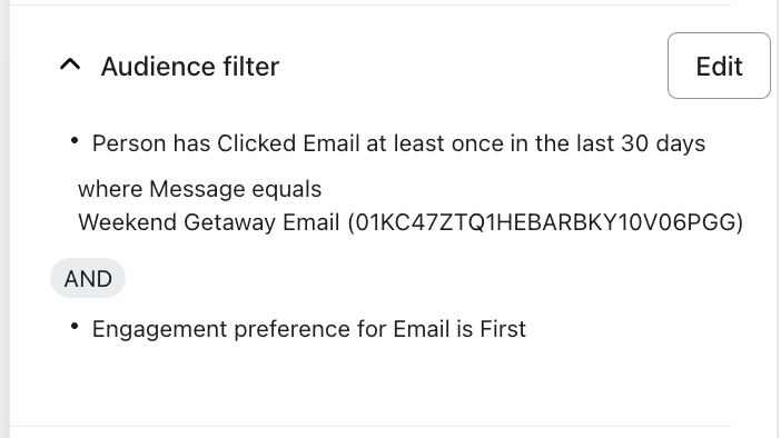 Descubre cómo los filtros de audiencia te permiten dirigirte a subsegmentos específicos de clientes para cada mensaje de tu campaña omnicanal. Al dirigirte a estos grupos específicos, envías el mensaje correcto en el momento adecuado y por el canal adecuado. Como resultado, tus campañas se volverán más personalizadas y aumentarán la interacción con el tiempo.