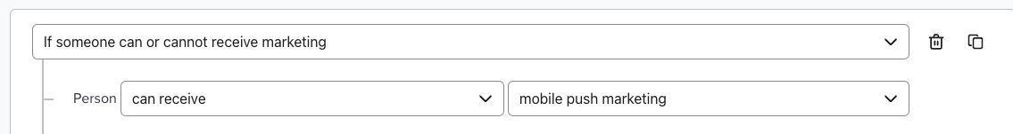 Si estás utilizando un flujo activado por segmento pero no se activa, asegúrate de que tu segmento tiene "alguien puede recibir Mobile Push marketing" como parte de la definición.