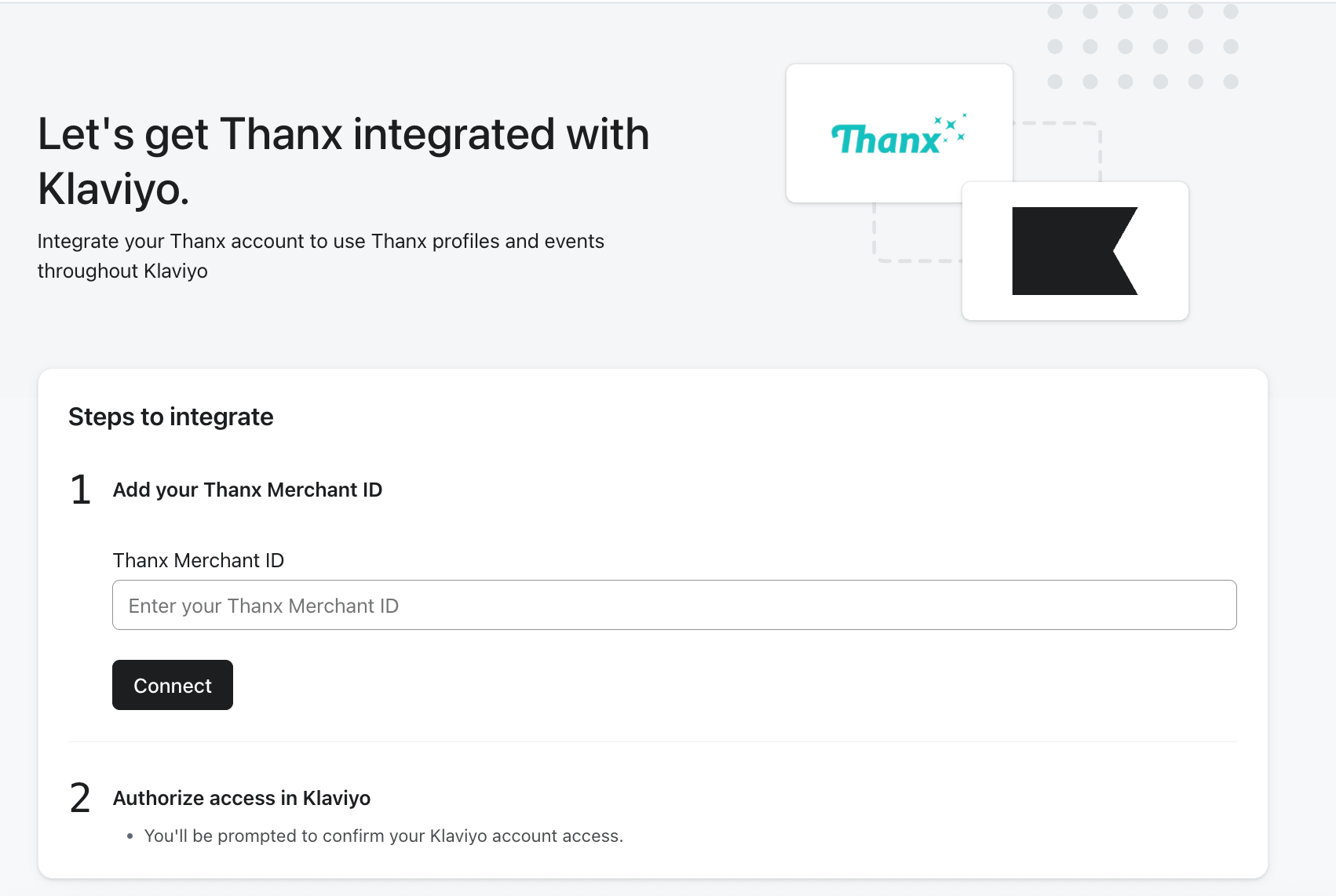 - En la página siguiente, introduce tu ID de comerciante Thanx y haz clic en Conectar.