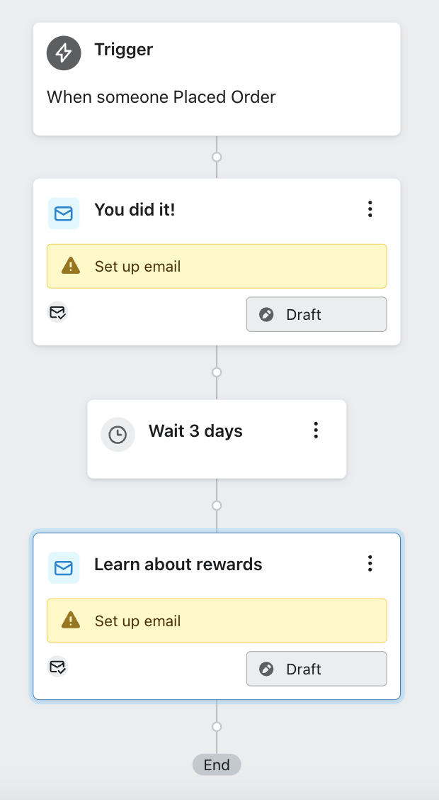 - Añade retardos y mensajes de correo electrónico relevantes para la acción desencadenante.