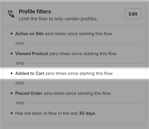 - Lo que alguien ha hecho (o no ha hecho) > Añadido a la cesta cero veces desde el inicio de este flujo