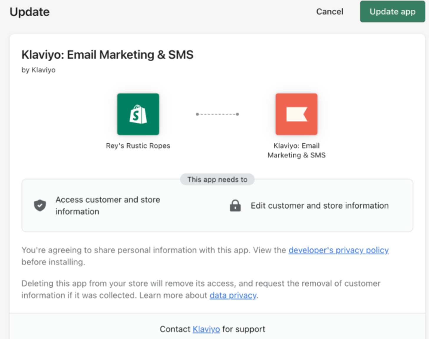 - Hay que tener habilitada la sincronización de perfiles de Klaviyo a Shopify para que funcione.