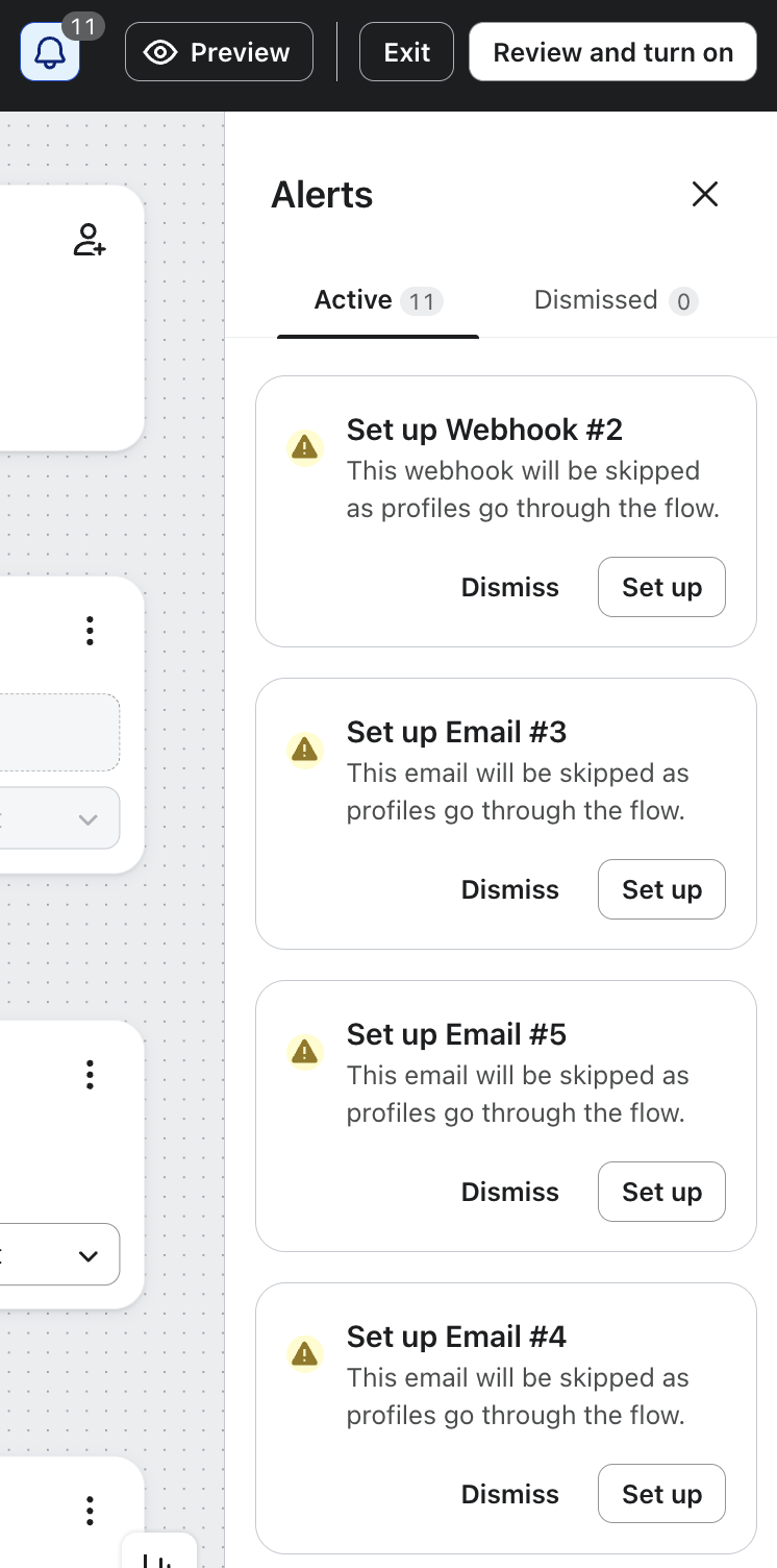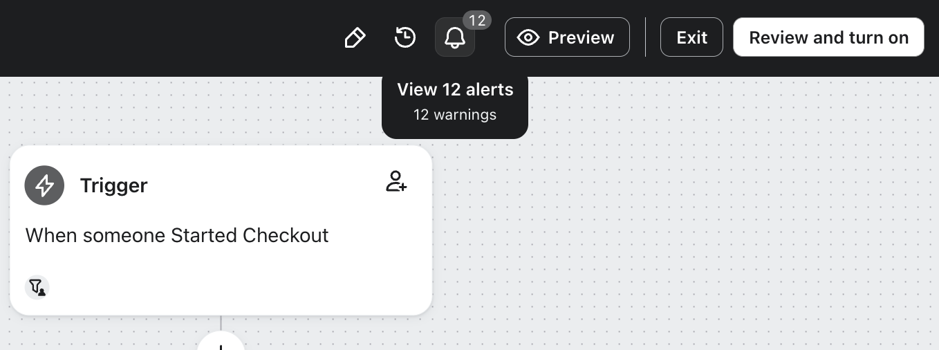 Conoce las diferentes alertas y mensajes de advertencia que puedes ver al configurar un flujo. Estos mensajes aparecen cuando la configuración está incompleta o una función/característica está cambiando y la configuración ya no es válida.