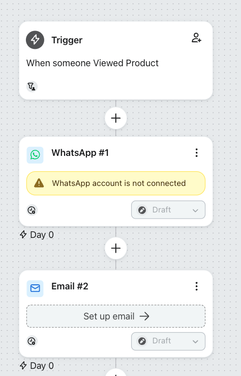 elemento en el constructor de flujo que no se hayan configurado o tengan una configuración no válida mostrarán un mensaje de advertencia respectivo en la tarjeta de acción. Una advertencia significa que el elemento se omitirá hasta que esté correctamente configurado.