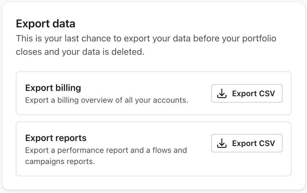 - Opcional: cuéntanos más sobre por qué cierras, para que Klaviyo pueda hacer mejoras.
