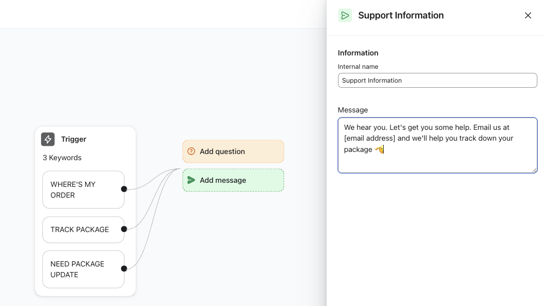 - Haz clic en Añadir mensaje para responder con texto sin formato.