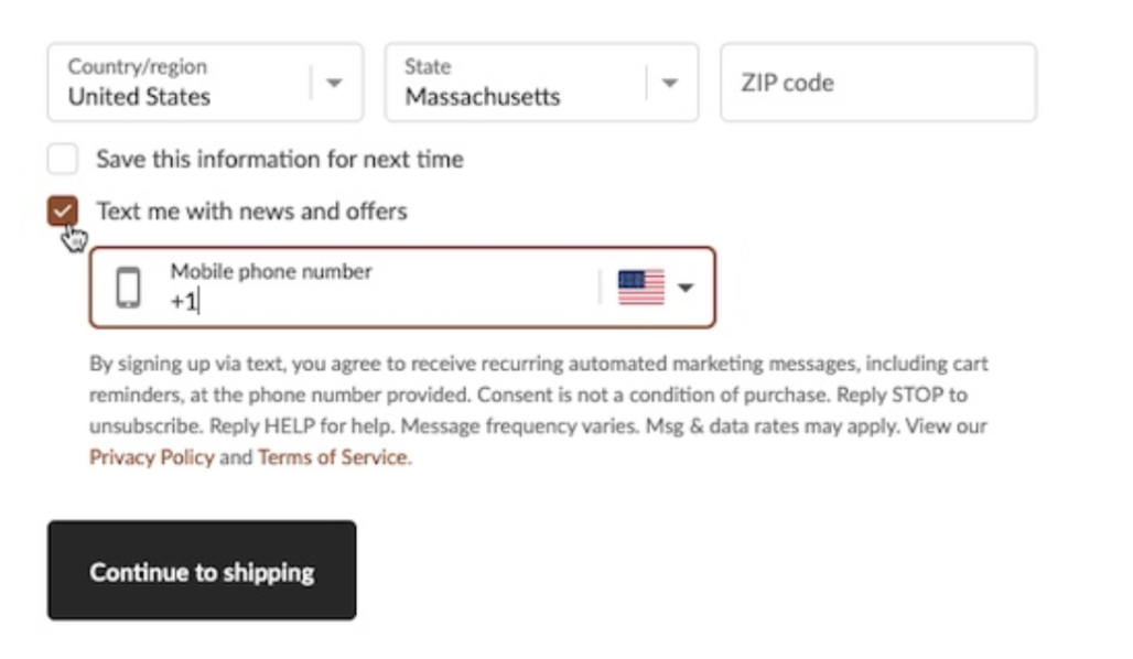 En Shopify: Añadir consentimiento para enviar SMS colección a página de pago