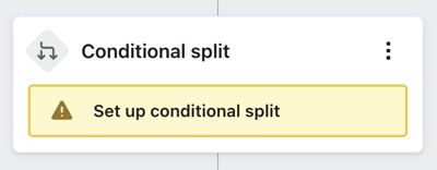 Si un fractionnement est non modifié, un message d’avertissement vous demandant de terminer la configuration s’affiche. Par défaut, les profils suivront le chemin OUI si le fractionnement n’est soumis à aucune condition.