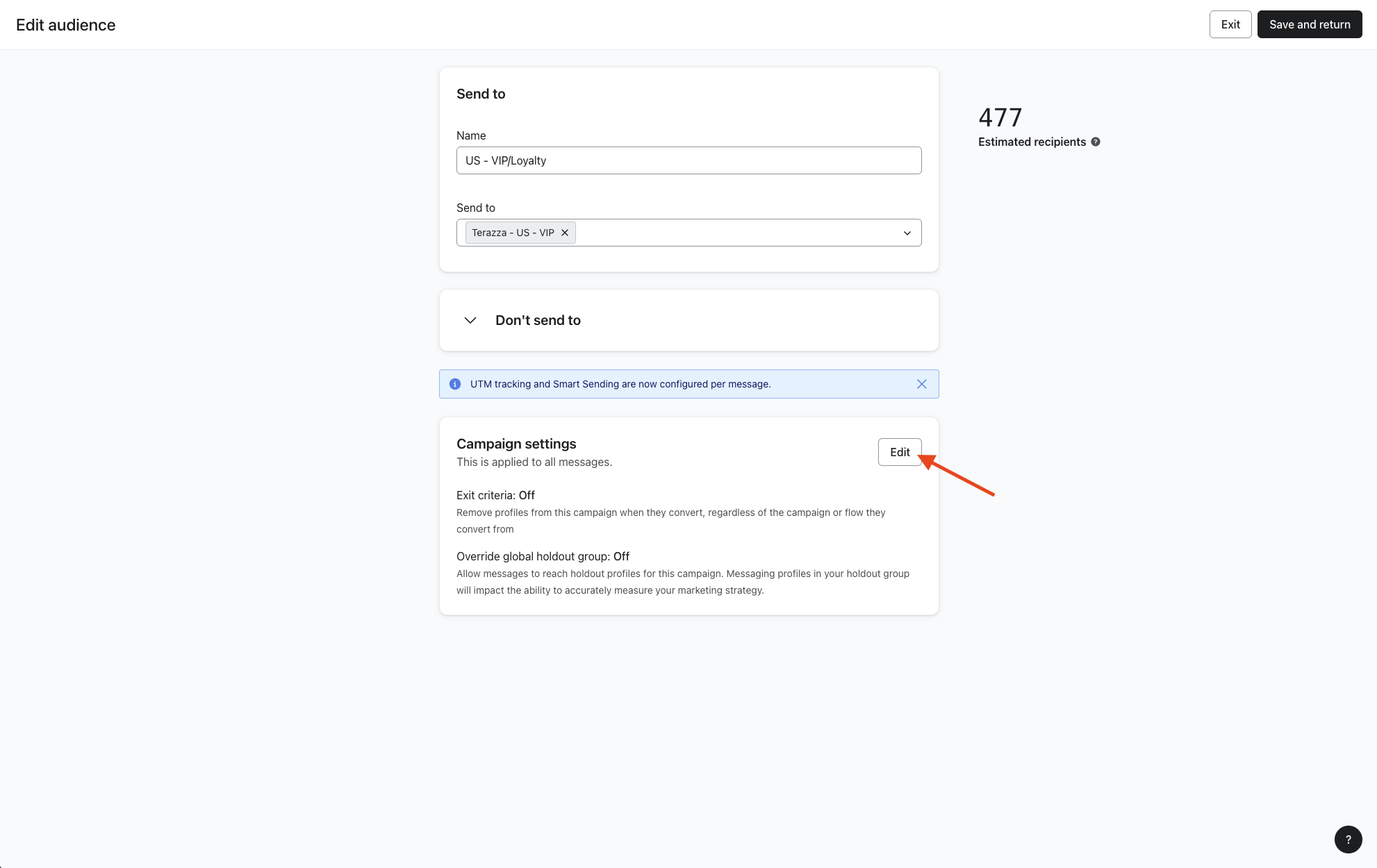 Les critères de sortie sont verrouillés une fois votre campagne envoyée.