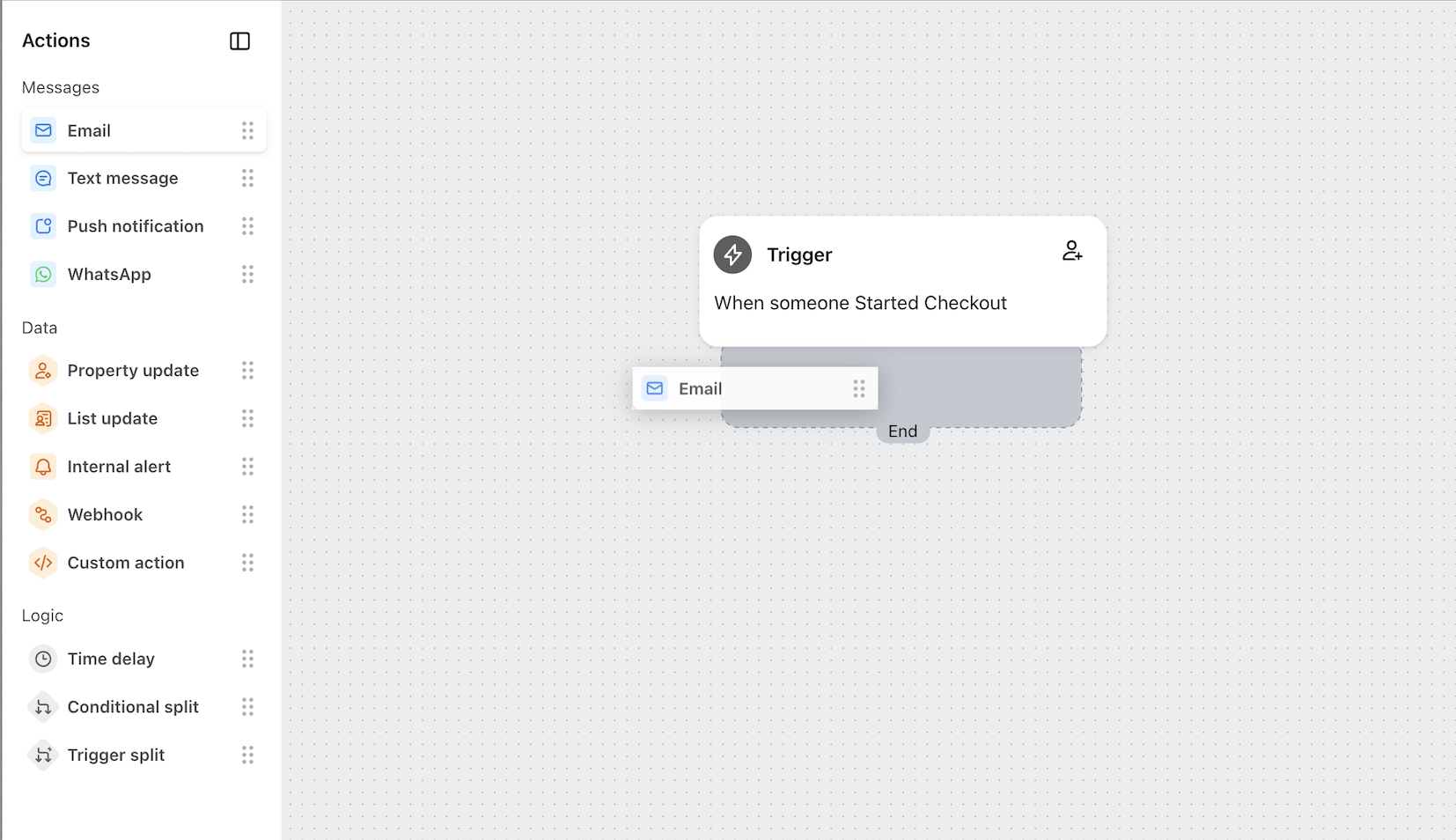 2. Carrello abbandonato: un flusso di carrello abbandonato converte gli aspiranti clienti; questo flusso è personalizzabile in base agli articoli presenti nel carrello di una persona e se è già cliente.