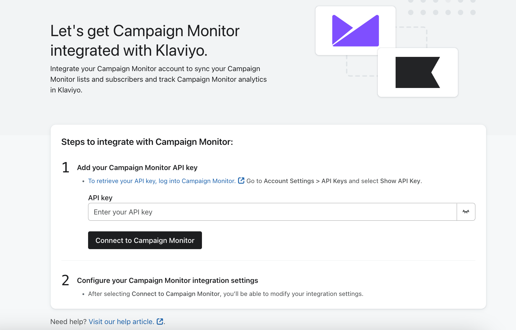Scopri come eseguire l'integrazione tra Campaign Monitor e Klaviyo per sincronizzare i tuoi elenchi e contatti e tracciare i dati analitici di Campaign Monitor in Klaviyo.