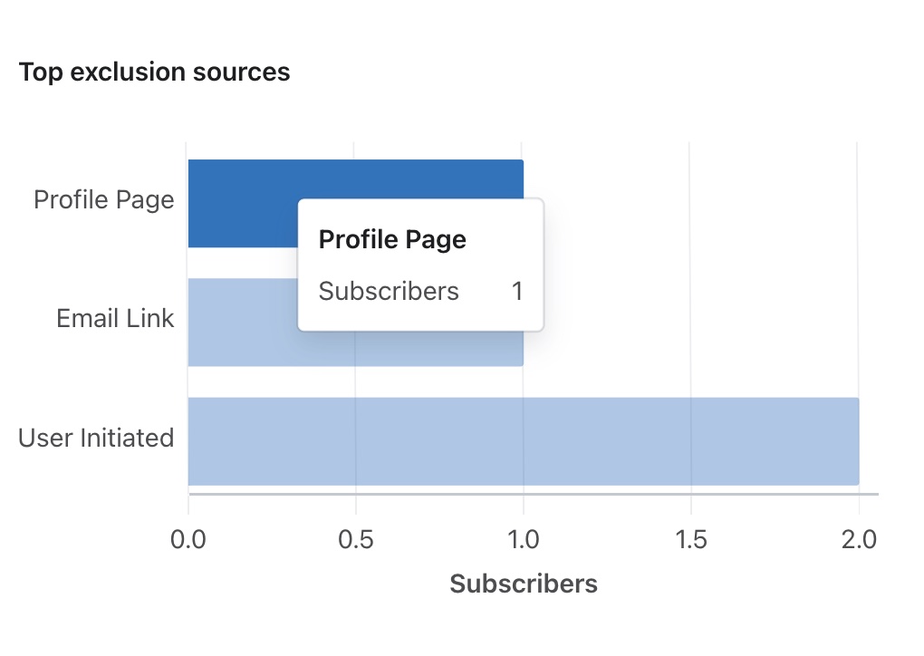 Inoltre, passando il mouse su una qualsiasi di queste barre, può esaminare il numero totale di abbonati che sono stati soppressi tramite quella specifica fonte.