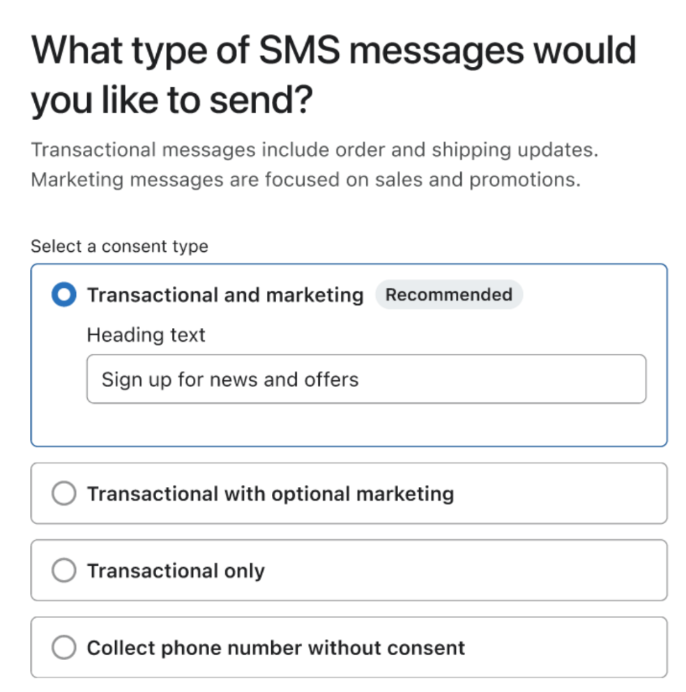 - Puoi utilizzare SMS app blocco per raccogliere il consenso al marketing, il consenso alle transazioni o entrambi.