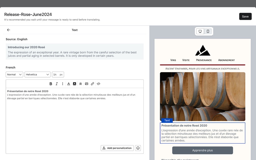 Prima di tradurre, assicurati che l'e-mail sia completamente modificata e pronta per essere inviata nella lingua originale. In caso contrario, dovrai ripetere il processo di traduzione se apporti modifiche al contenuto originale.