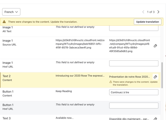 - Clicca su aggiorna, aggiorna traduzione per aggiornare, aggiorna tutti i blocchi non sincronizzati che sono evidenziati in giallo.