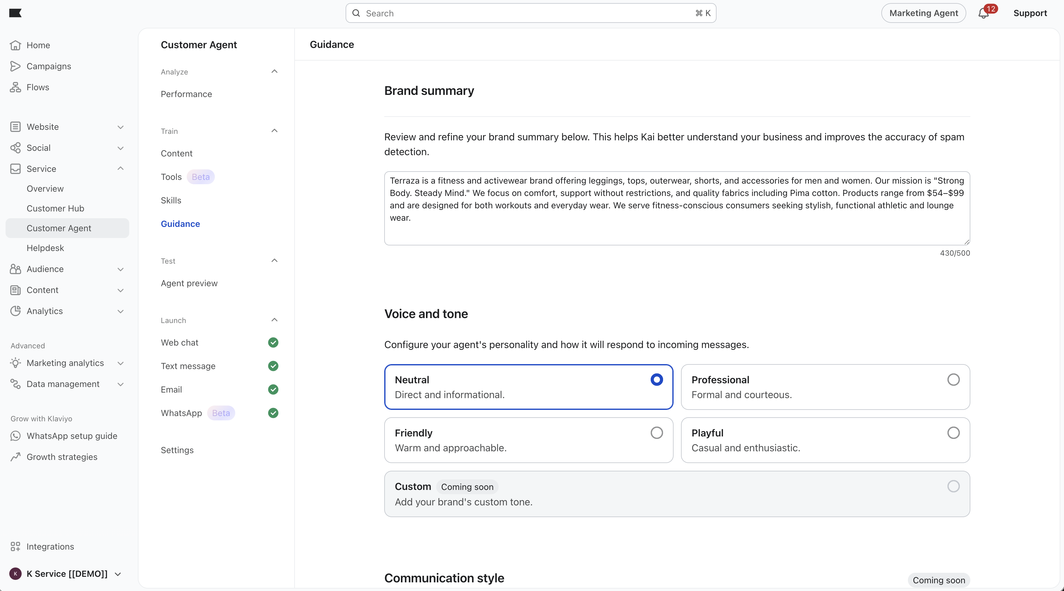 Il riepilogo del tuo marchio e le regole di segnalazione sono archiviati nel tuo account Klaviyo e vengono utilizzati esclusivamente per configurare il tuo Customer Agent. Il contenuto della guida non è condiviso tra gli account.