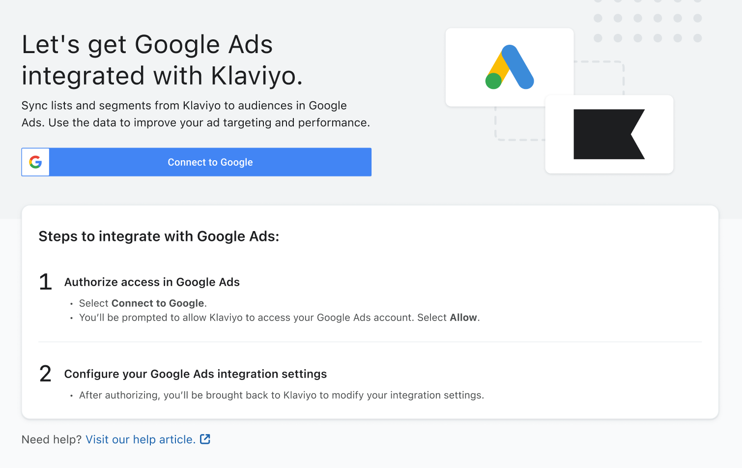 Prima di integrarsi con Google Ads, configuri il suo account Klaviyo e si integri con la sua piattaforma di e-commerce. Consulti la nostra guida per iniziare a lavorare con Klaviyo.
