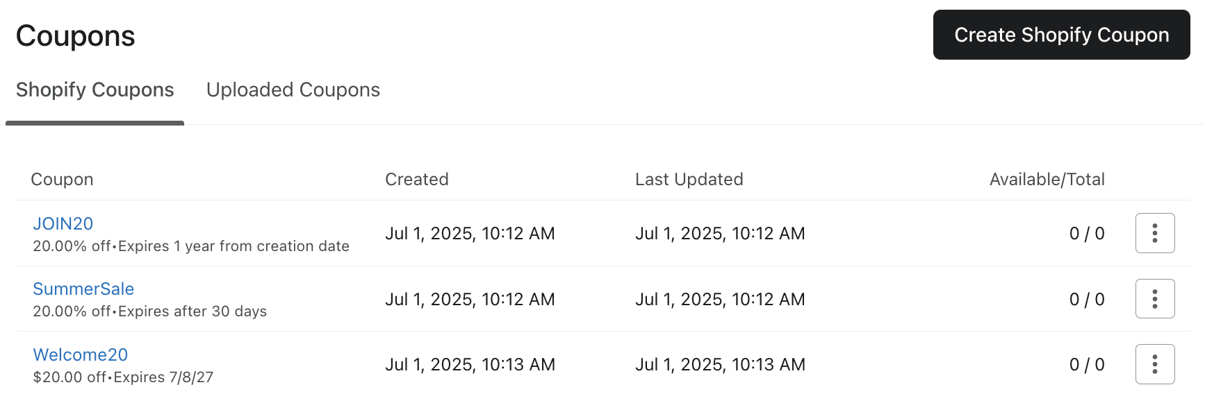 - Shopify でクーポンの定義を変更した場合、すでに送信されたクーポンコードも影響を受けます。