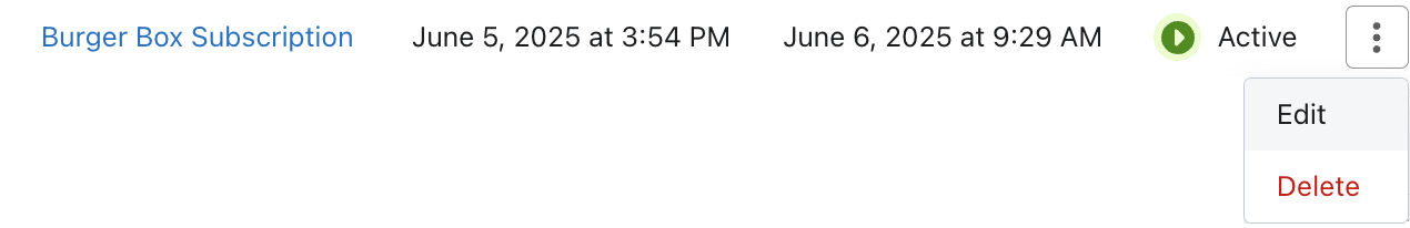 - オブジェクトの右にあるメニューで、Deleteをクリックします。