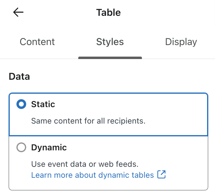 - デフォルトでは、[スタイル] の [データ] フィールドは [静的] に設定されています。この設定を変更しないでください。