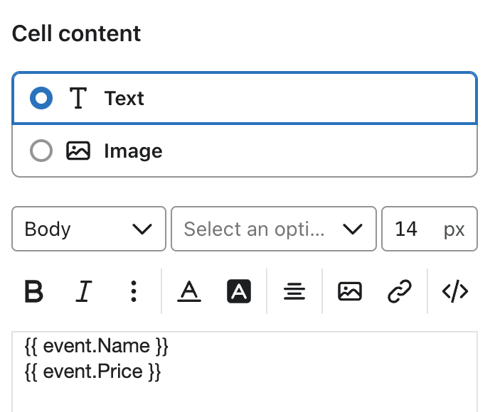 - 現在、[セルのコンテンツ] が [テキスト] に設定されている場合は、[画像] をクリックします。