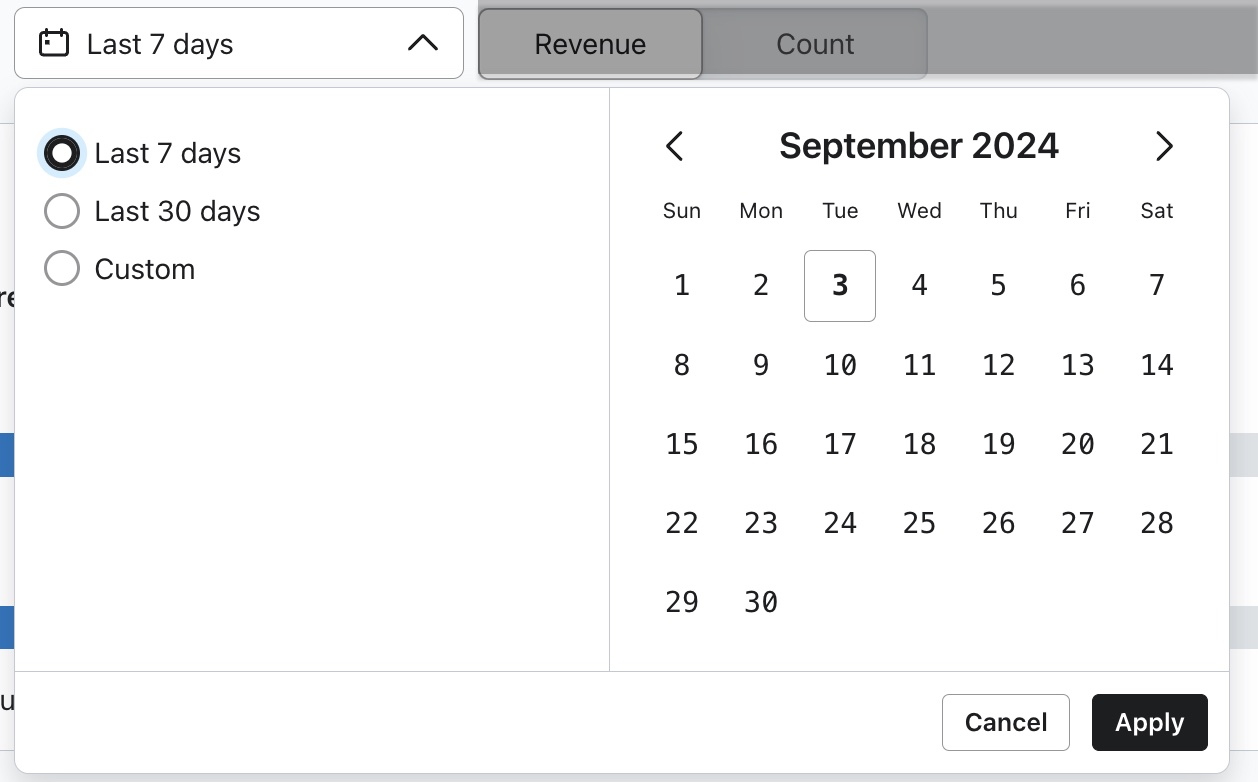 - 선택 사항: 매출 대신 총 개수 기준으로 데이터를 검토하려면개수 옵션을 선택합니다.