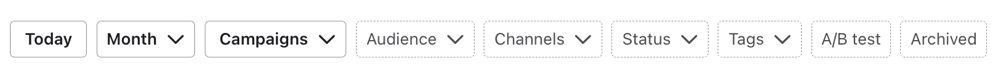 필터를 사용하여 캘린더 보기에 표시되는 캠페인을 제한하고 특정 기준을 충족하는 캠페인을 빠르게 찾을 수 있습니다.