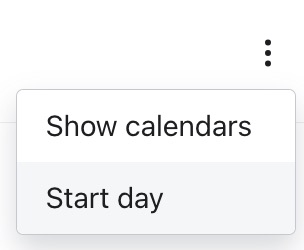 맨 오른쪽의 작업 버튼을 클릭하여 한 주가 일요일에 시작되는지 월요일에 시작되는지 선택하세요.