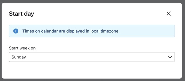 - 요일을 선택하여 한 주를 시작할 요일로 지정합니다.