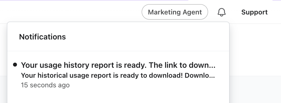 월 사용량 한도에 가까워지면 Klaviyo가 인앱 알림과 이메일 알림을 통해 미리 알려줍니다. 이메일 알림은 계정 소유자의 이메일 주소로 전송됩니다.