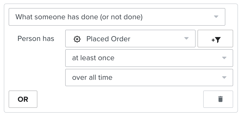 - 재구매 고객, 첫 구매자, 비구매자 등 구매 이력을 기반으로 트리거되도록 플로우를 제한합니다.