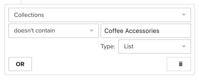 트리거 필터를 "컬렉션이 " 다음에 컬렉션 이름과 같지 않음으로 설정하여 전체 컬렉션을 제외할 수도 있습니다.