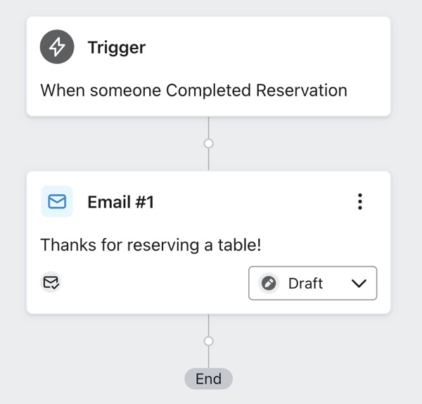 OpenTable 메트릭을 사용하여 흐름을 트리거할 수 있습니다. 예를 들어 예약 완료 메트릭을 사용하여 예약 완료 시 즉시 누군가에게 메시지를 보내도록 플로우를 트리거할 수 있습니다.
