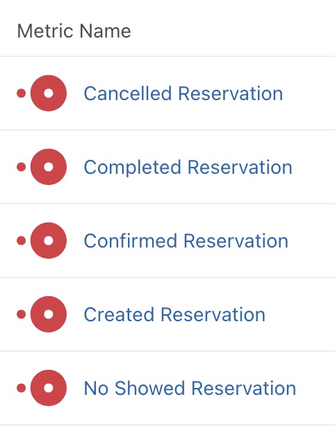 - 메트릭을 선택합니다. 여기에서 계정의 모든 메트릭을 볼 수 있습니다. "OpenTable"이라는 레이블이 붙은 지표는 OpenTable 연동에서 동기화된 모든 지표를 나타냅니다.