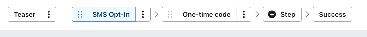 모든 스마트 옵트인 템플릿에는 SMS 옵트인 단계와 일회용 코드 단계가 있습니다. 모든 단계에는 제출 버튼이 포함되어 있으며, 일회용 코드 단계에는 코드 다시 보내기 버튼이 추가로 포함되어 있습니다. 클라비요는 각 양식 단계의 버튼을 적절한 동작 설정으로 미리 구성하므로 수동으로 조정할 필요가 없습니다. 일부 사전 구축된 스마트 옵트인 템플릿에는 SMS 옵트인 이전 또는 같은 단계에 이메일 옵트인 단계가 포함될 수도 있습니다.