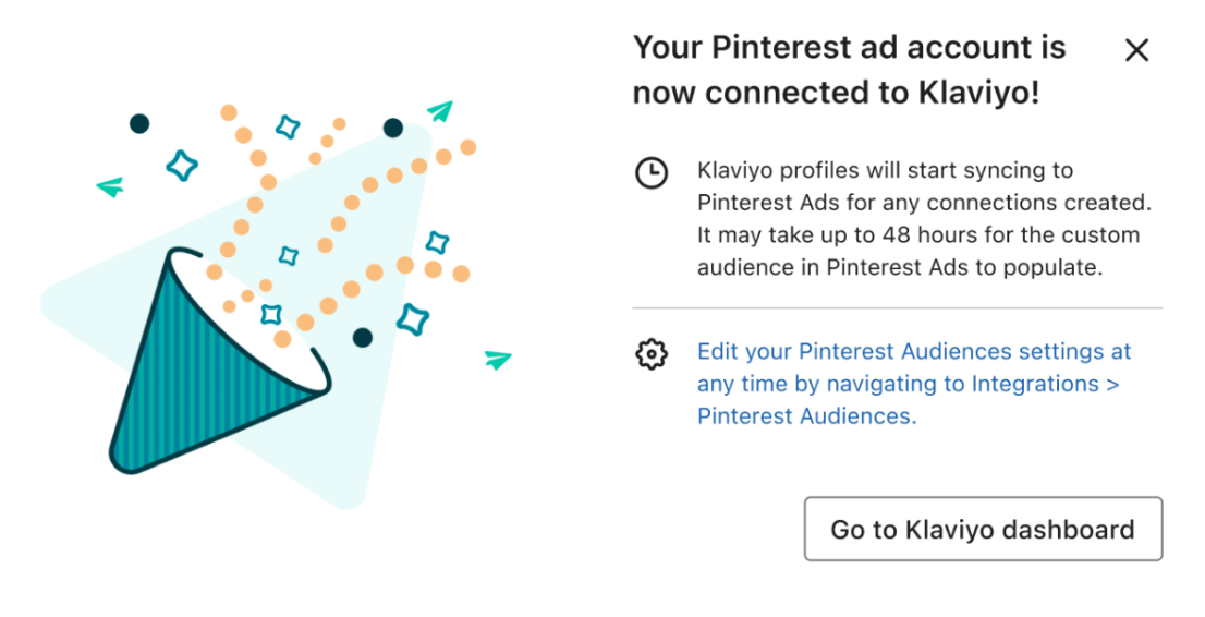 Pinterest와 Klaviyo의 통합이 완료되었으므로 이제 Klaviyo를 사용하여 Pinterest에서 광고 전략을 추진할 수 있습니다.